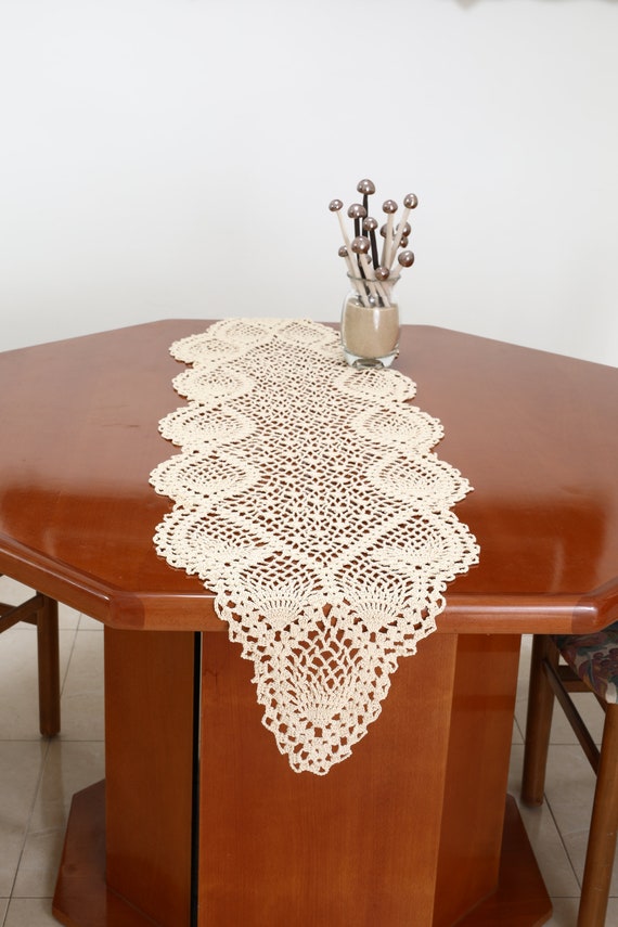 Ourwarm macrame table runner, cotton crochet lace boho table runner, woven table runner with tassels for bohemian wedding bridal shower home rustic farmhouse dining table decor, 12 x 72 inch. A colorful crocheted runner is a classic table top accent. Using thread #20, this table runner can fit most tables. When scanned, some of the lines on the original chart were light, making the 1919 below you'll find approximate finished sizes for making the table runner with sizes 5 through 30 crochet thread.