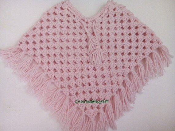 Background. The two ponchos are identical to. The crochet girl's poncho is a one piece garment that slides over the head of the child.